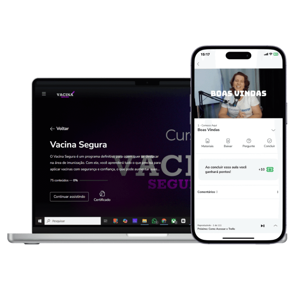 O Vacina Segura se diferencia por oferecer um conteúdo completo e atualizado, com foco na prática e na realidade do profissional de saúde. O curso inclui: